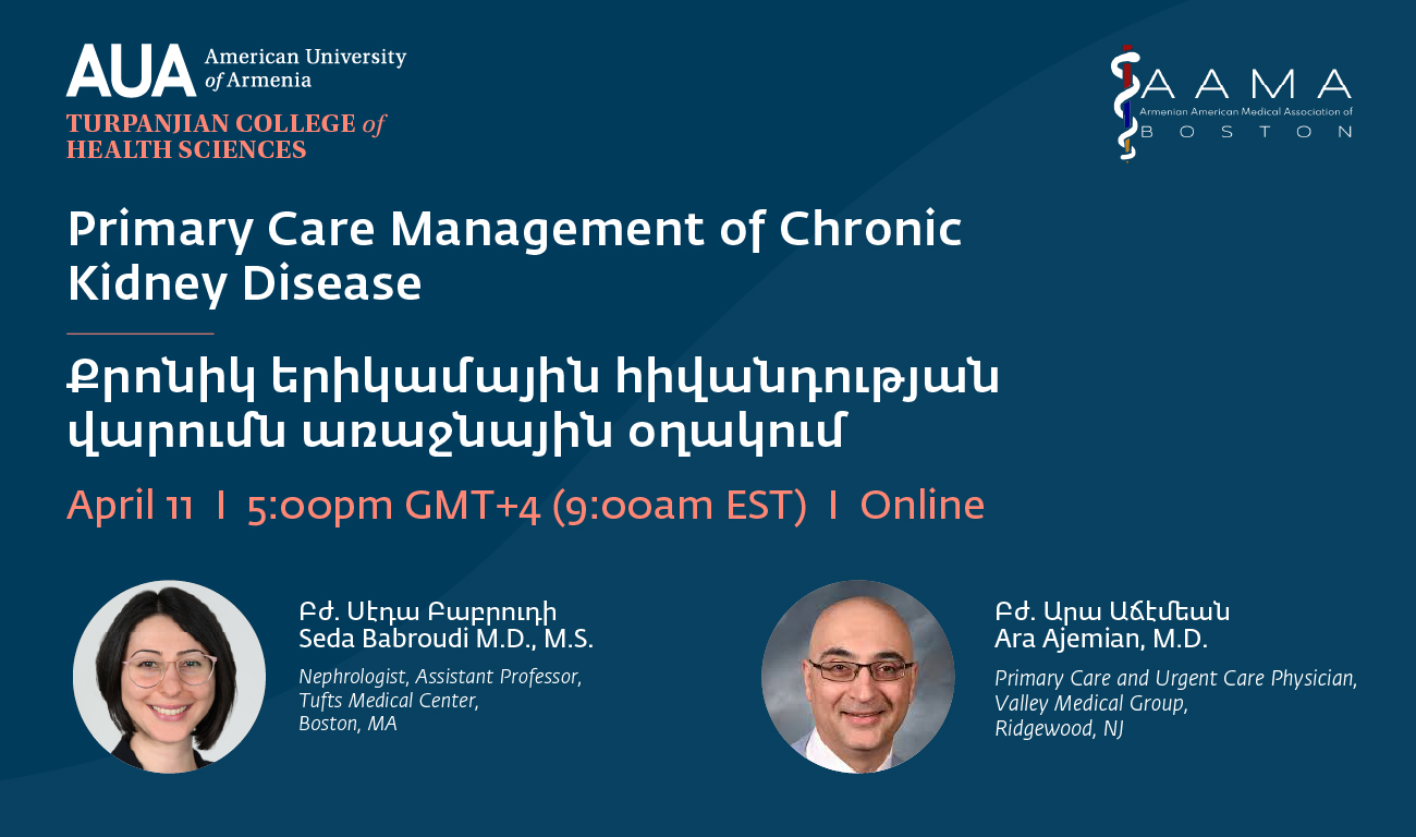 The Armenian American Medical Association (AAMA)’s mission is to promote excellence in healthcare in the Armenian communities we serve and support the professional development of our members in the Boston area and throughout New England.